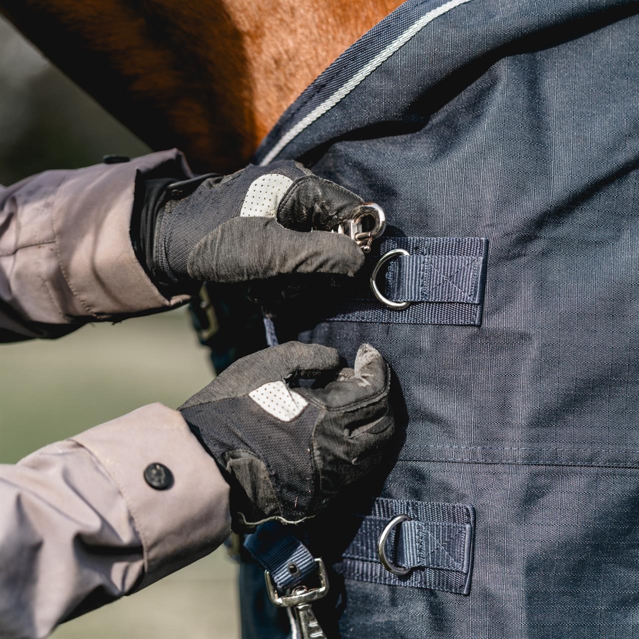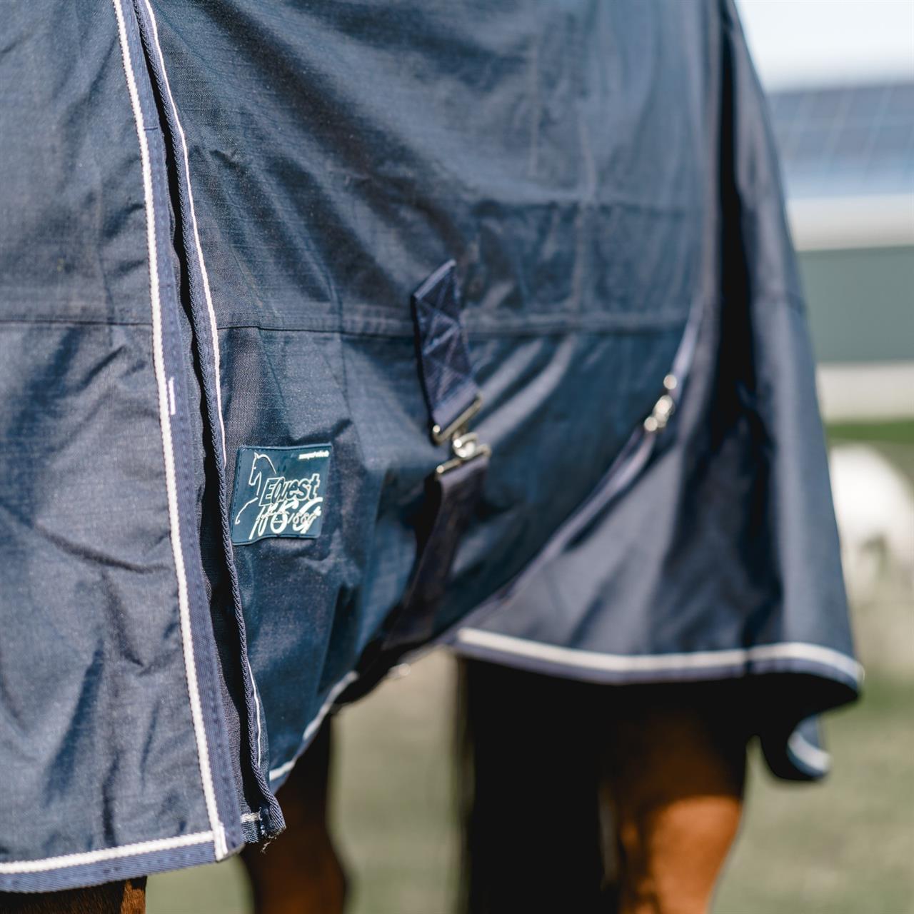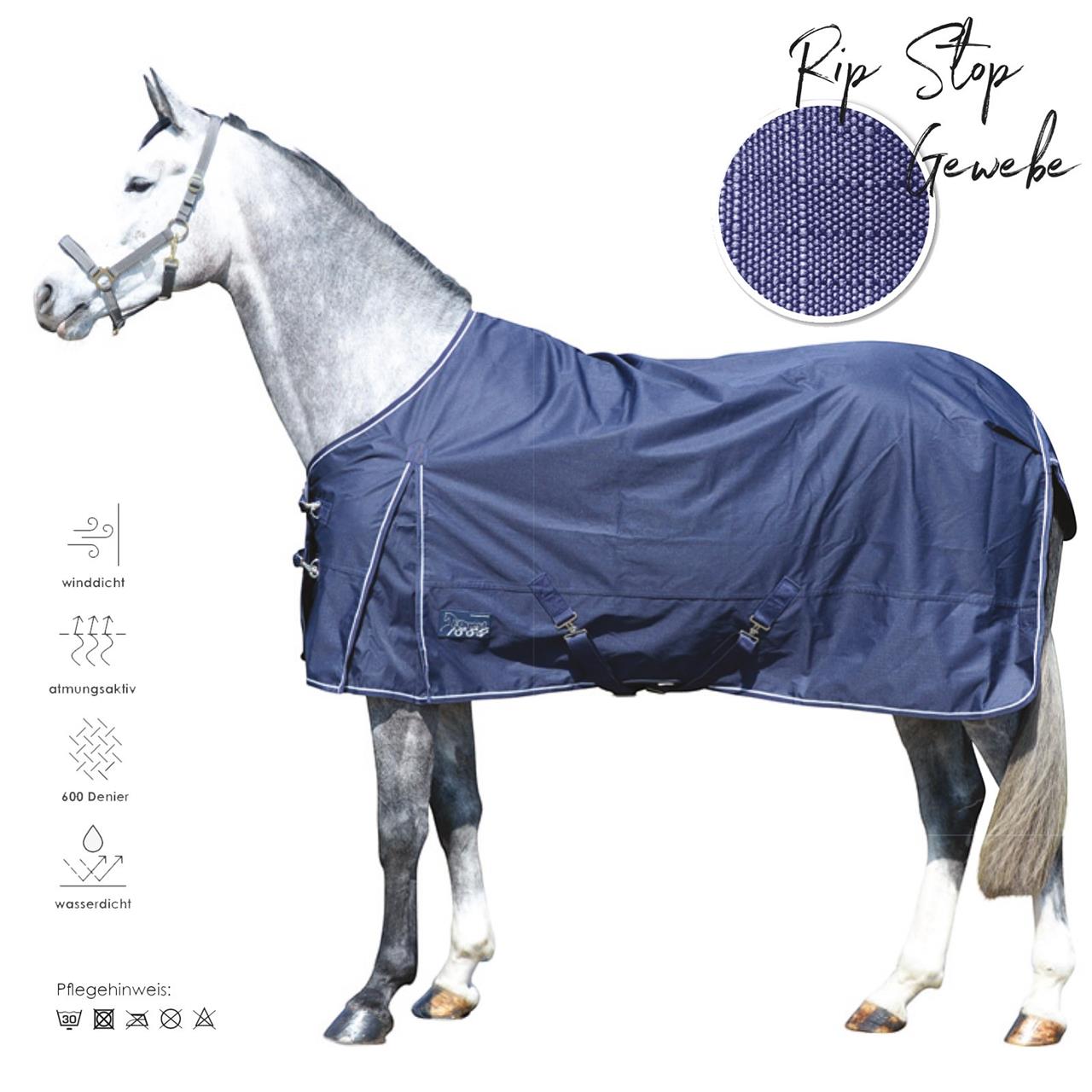 The 600 Denier outdoor rug protects your horse from wind and weather, as the waterproof and breathable material provides good temperature control and protects against the elements. Robust cross surcingles, inside leg straps and two size-adjustable front closures guarantee optimum fit. The front gusset provides generous of freedom of movement.