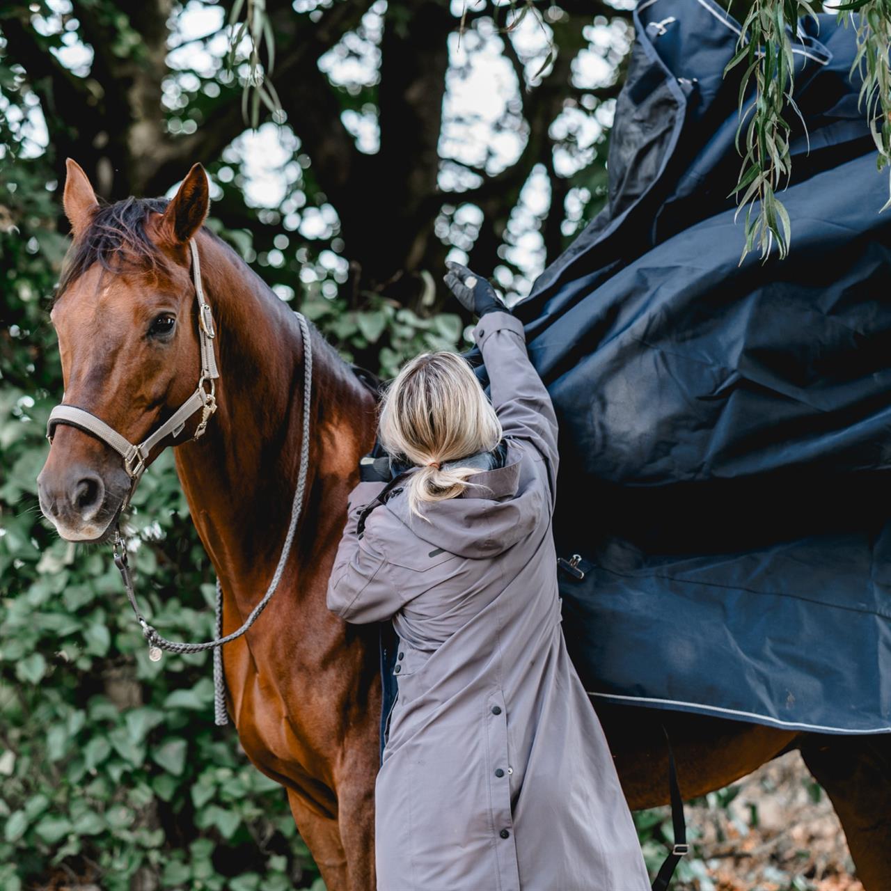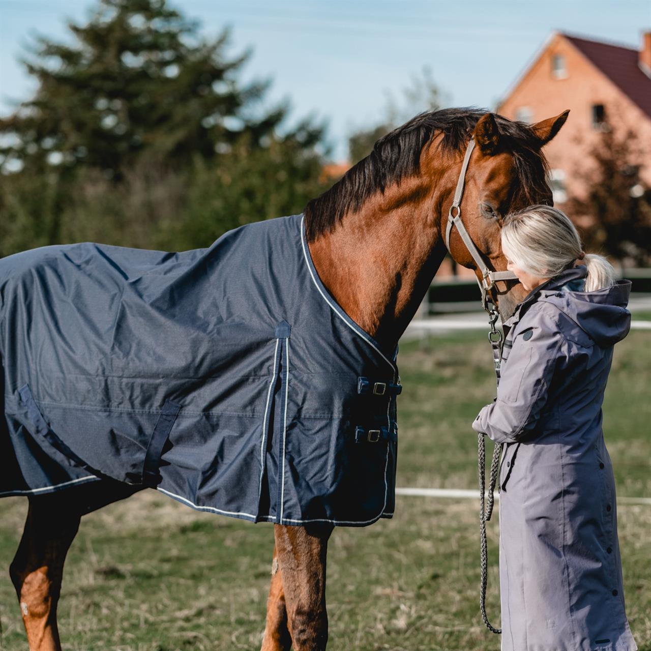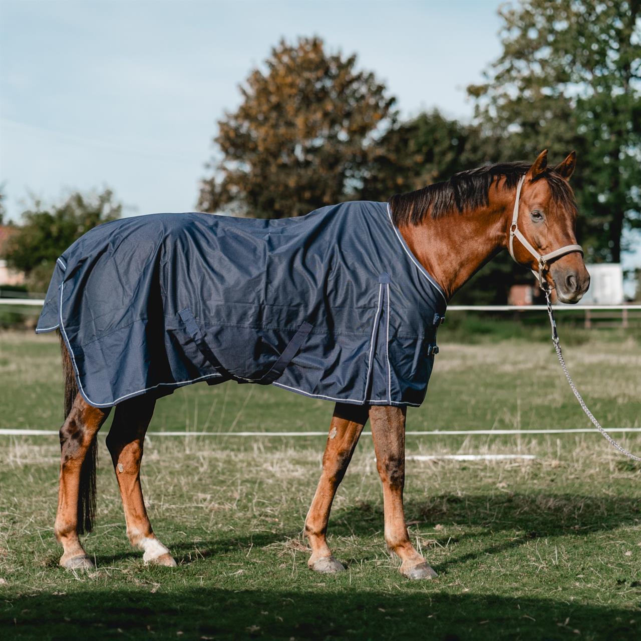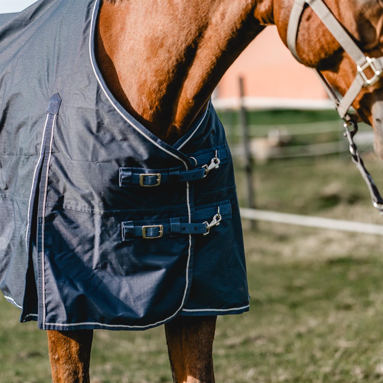The 600 Denier outdoor rug protects your horse from wind and weather, as the waterproof and breathable material provides good temperature control and protects against the elements. Robust cross surcingles, inside leg straps and two size-adjustable front closures guarantee optimum fit. The front gusset provides generous of freedom of movement.